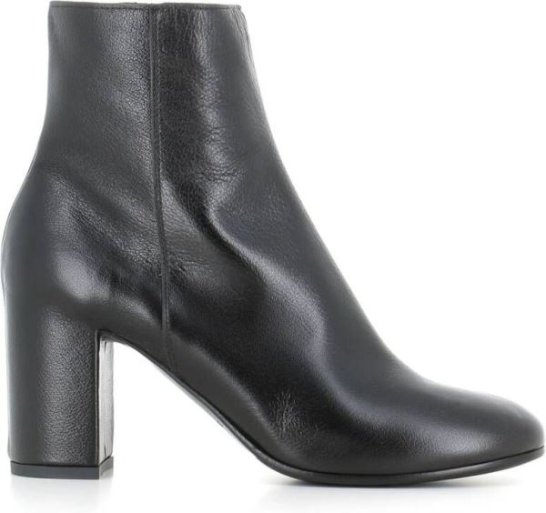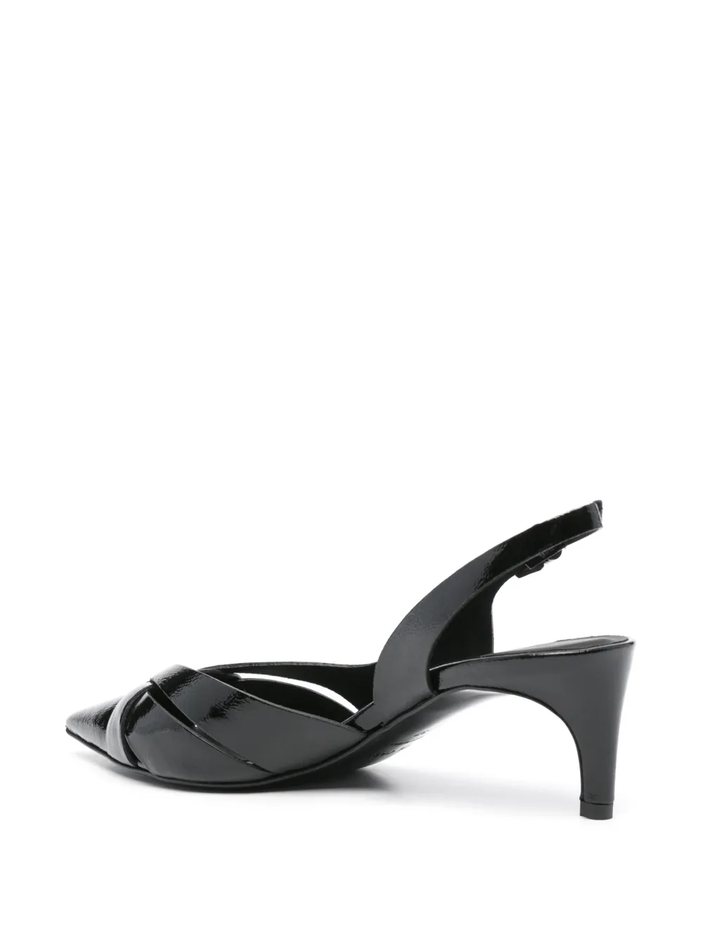 zwart slingback bandje met gespsluiting leren binnenzool met logo kittenhak uitgesneden detail