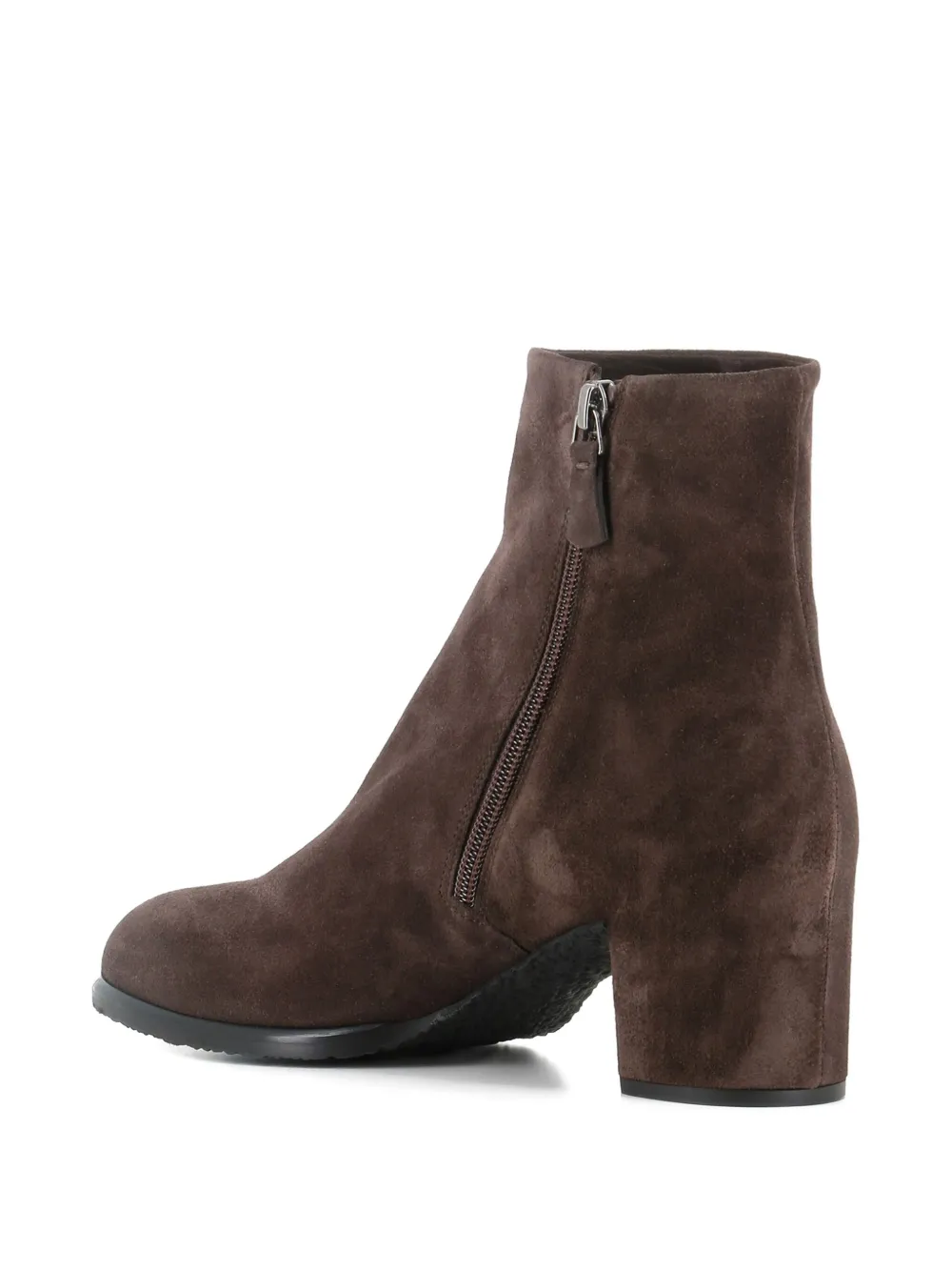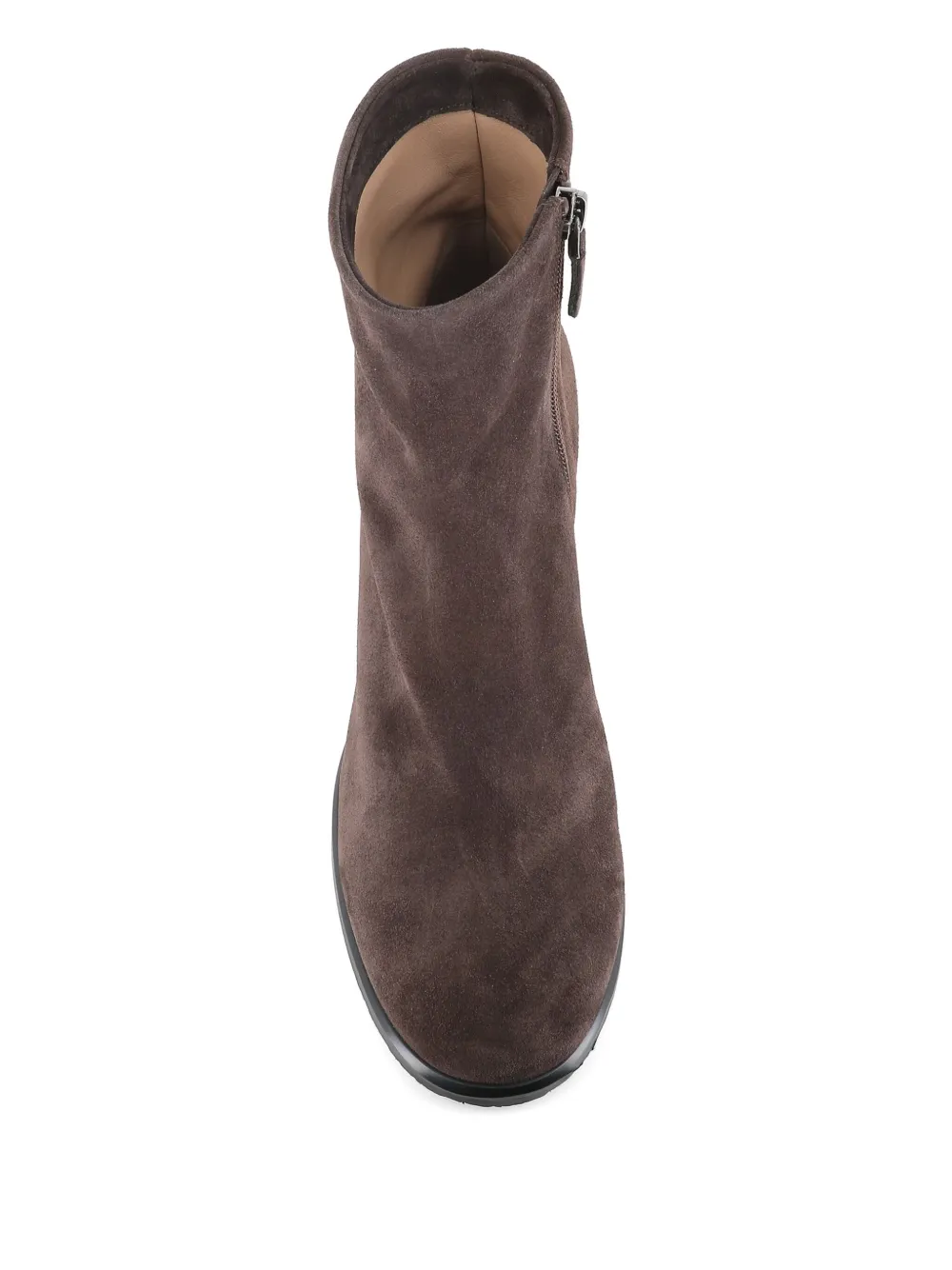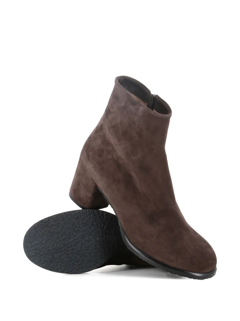 bruin sude blokhak ritssluiting aan de zijkant enkellengte ronde neus