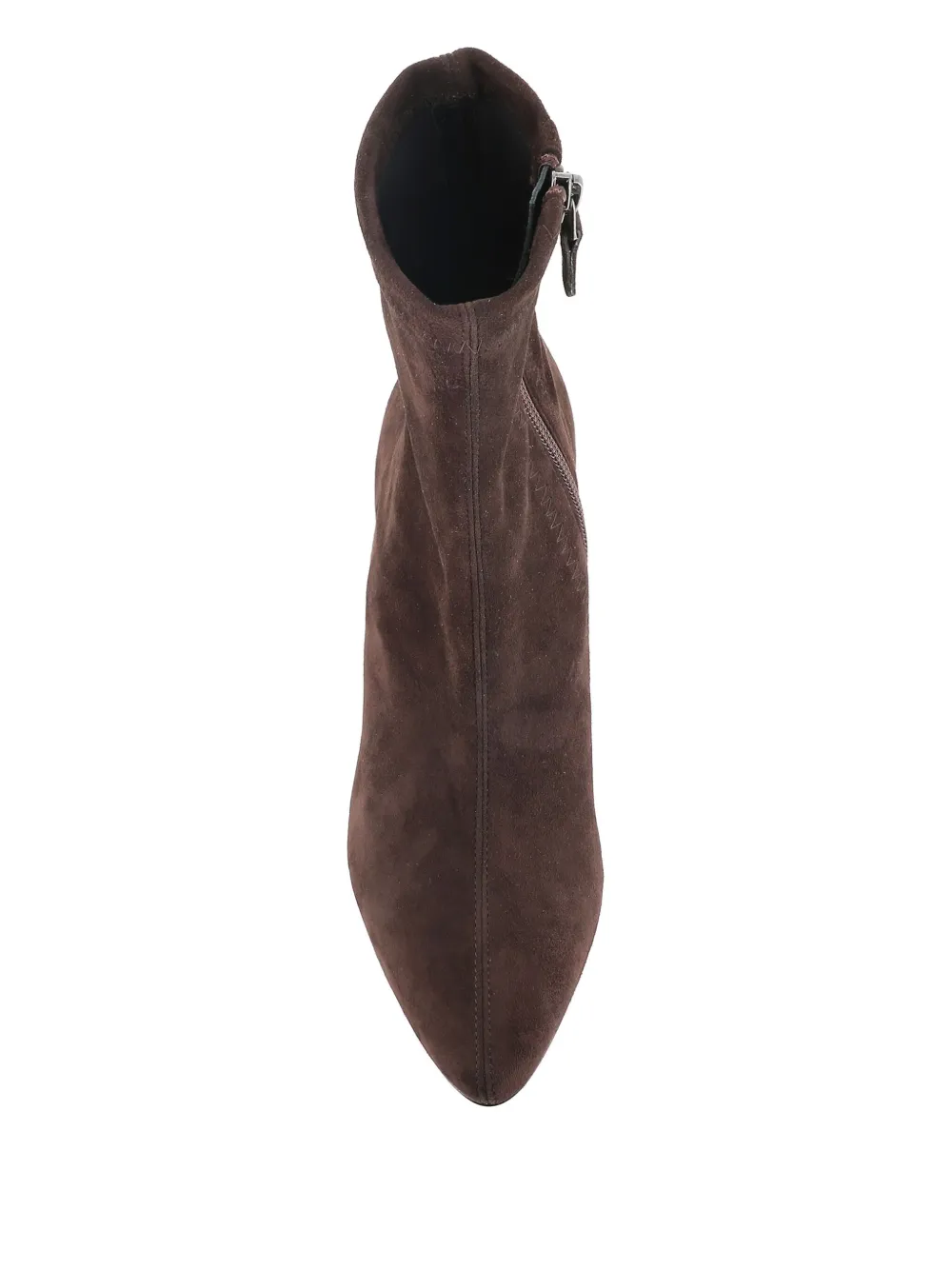 donkerbruin sude bovenkant puntige neus trechterhak ritssluiting aan de zijkant