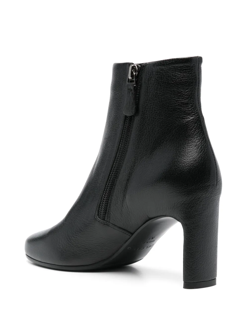 zwart kalfsleer bewerkte textuur ritssluiting aan de zijkant 70 mm halfhoge hak ronde neus leren binnenzool met logo leren en rubberen zool enkellengte