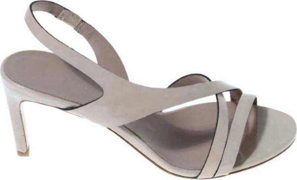 camelbruin enkelbandje met gespsluiting halfhoge blokhak voetbed met logo open neus
