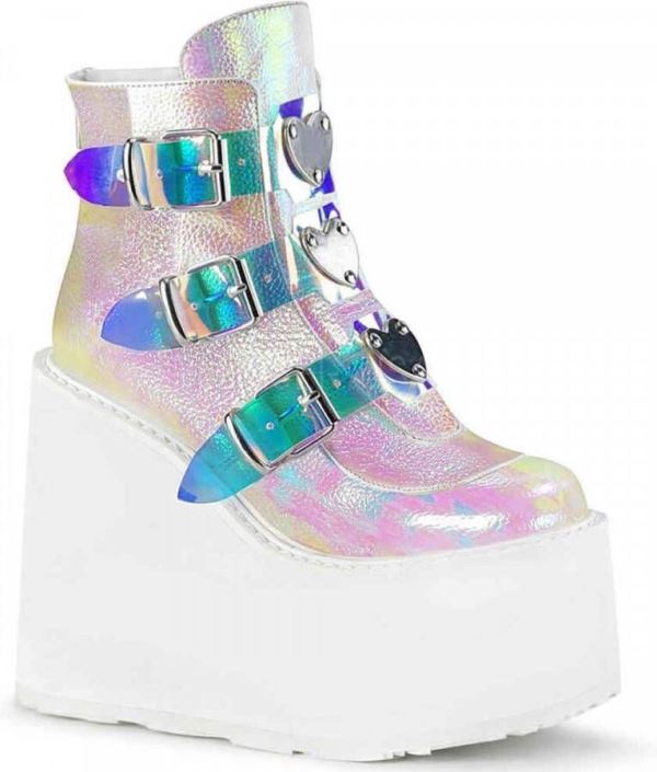 2 3/4 Platform Lace-Up Ankle Boot W/ Silver Chrome Plated Metal Toe Cap & Zipper Details, Metal Back Zip ClosureMateriaal:PU/TPU – Polyurethaan – Thermoplastisch rubber