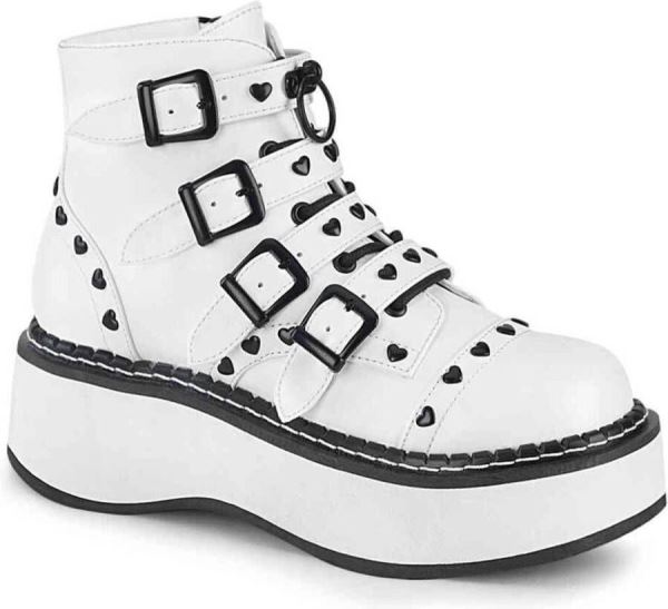 Demonia. Een mat zwarte laars met riemen. Plateau 7 inch = 17.78 cm.Materiaal:PU/TPU – Polyurethaan – Thermoplastisch rubber[ Schoenen in allerlei stijlen zoals laarzen, creepers, pumps, stiletto’s, vegan, sleehakken, steampunk, gothic, punk, studs, emo, grunge, pinup, vintage, retro, metal, rock, edgy ]