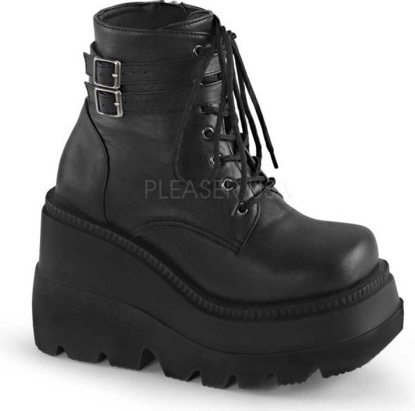Demonia. 5 (127mm) Chunky Heel, 3 (75mm) Platform Lace-Up Mid-Calf Boot Featuring Double Hook N’ Loop Straps, Back Zip ClosureMateriaal:PU/TPU – Polyurethaan – Thermoplastisch rubber