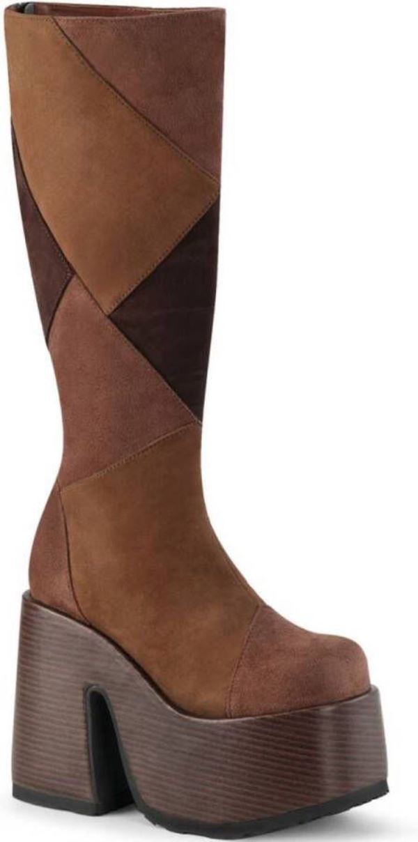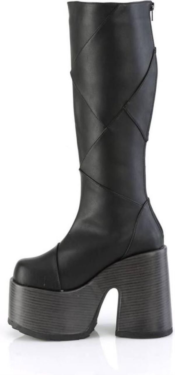 Demonia. 5″””” (127mm) Block Heel, 3″””” (75mm) Faux Wood Wrapped Platform Patchwood Knee High Boot, Inside Zip ClosureMateriaal:PU/TPU – Stof – Polyurethaan – Semi-Polyurethaan – Rubber