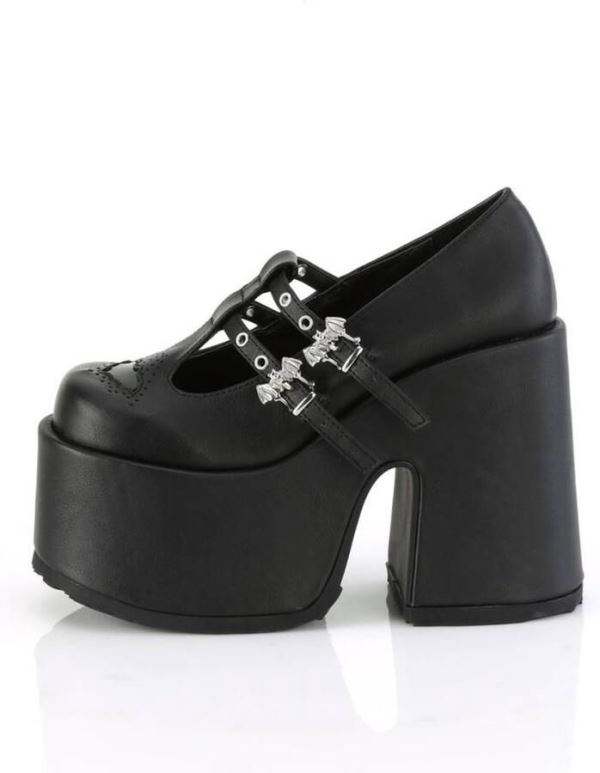 Demonia. 5″” Chunky Heel, 3″” Platform Eyelet Double T-Strap MaryjaneMateriaal:PU/TPU – Semi-Polyurethaan – Polyurethaan – Thermoplastisch rubber