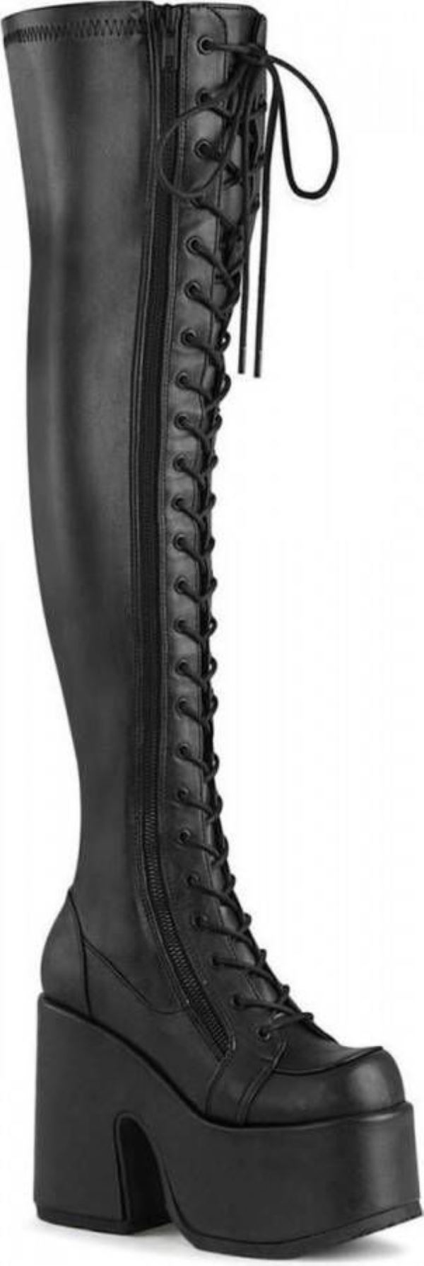 Demonia. 5 Chunky Heel, 3 PF Thigh-High Lace-Up Boot, Outside Zip