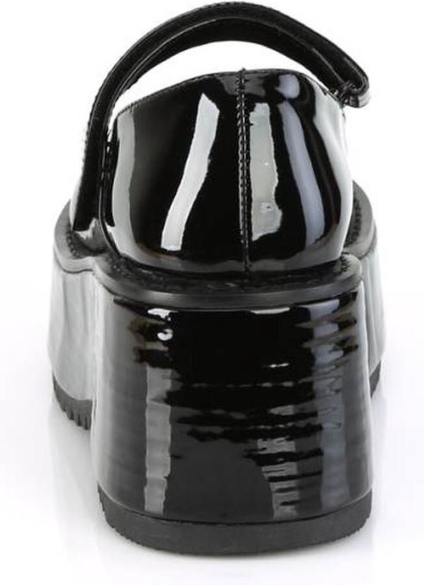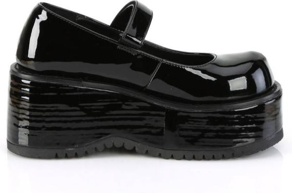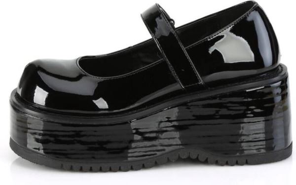 Demonia. 3 1/4″””” (83mm) Platform Maryjane W/ Hook N’ Loop StrapMateriaal:Lak – Semi-Polyurethaan – Lakleer – Thermoplastisch rubber