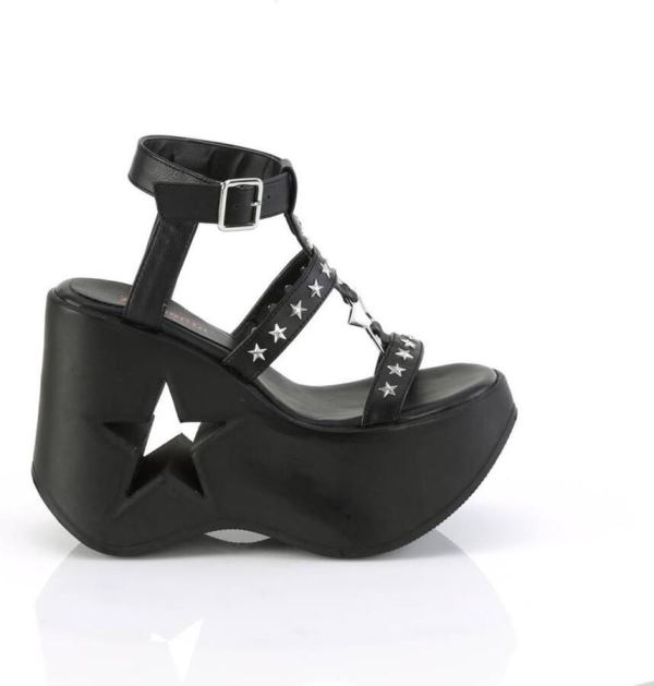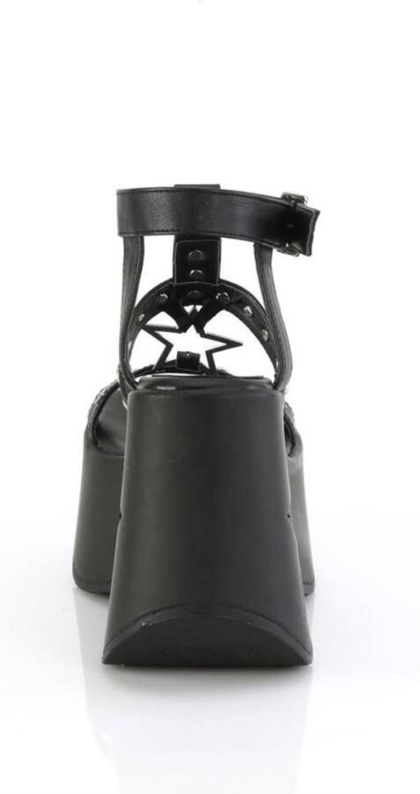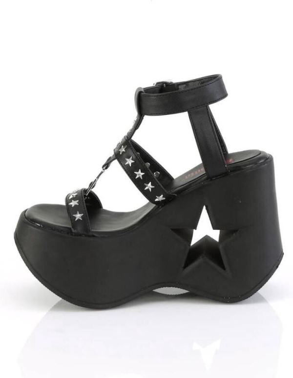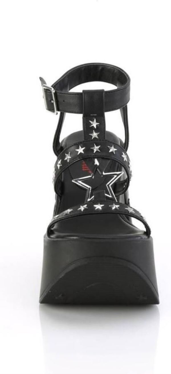 Demonia. 5″” Star Cutout PF Wedge Wrap Around Ankle Strap SandalMateriaal:PU/TPU – Semi-Polyurethaan – Polyurethaan