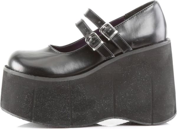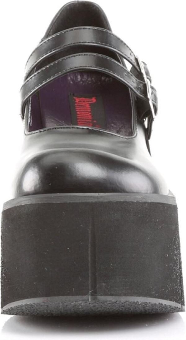 Demonia. Een zwarte schoen met twee bandjes aan de bovenkant. Plateau zool 4, 5 inch = 11.4 cm.Materiaal:PU/TPU – Polyurethaan[ Gothic, Metal, Rock ]