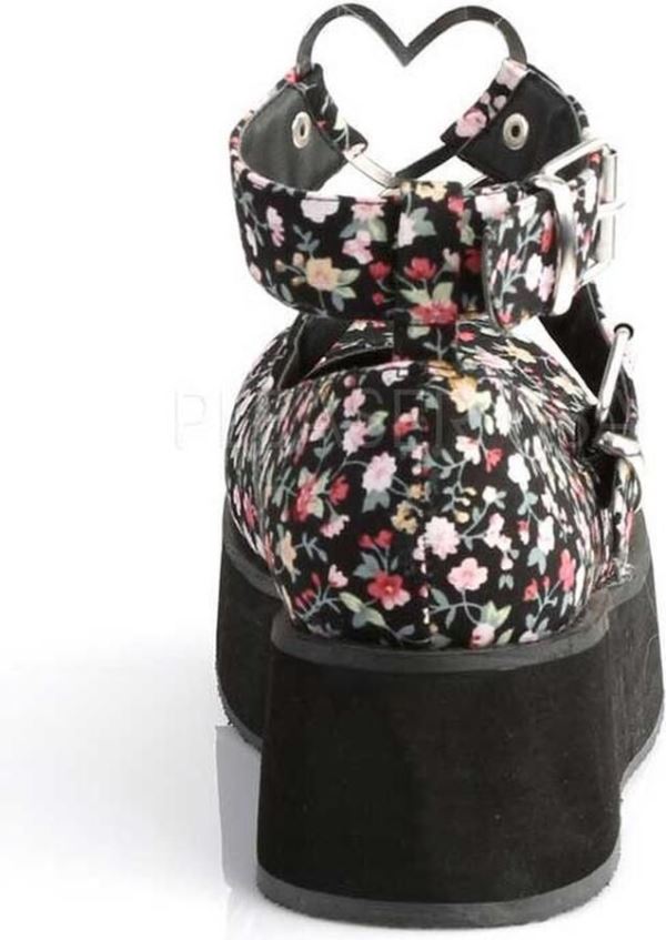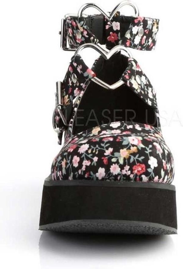 DemoniaCult Sprite-02 plateau Mary Jane schoen met bloemen print en enkelbandjes zwart Demonia